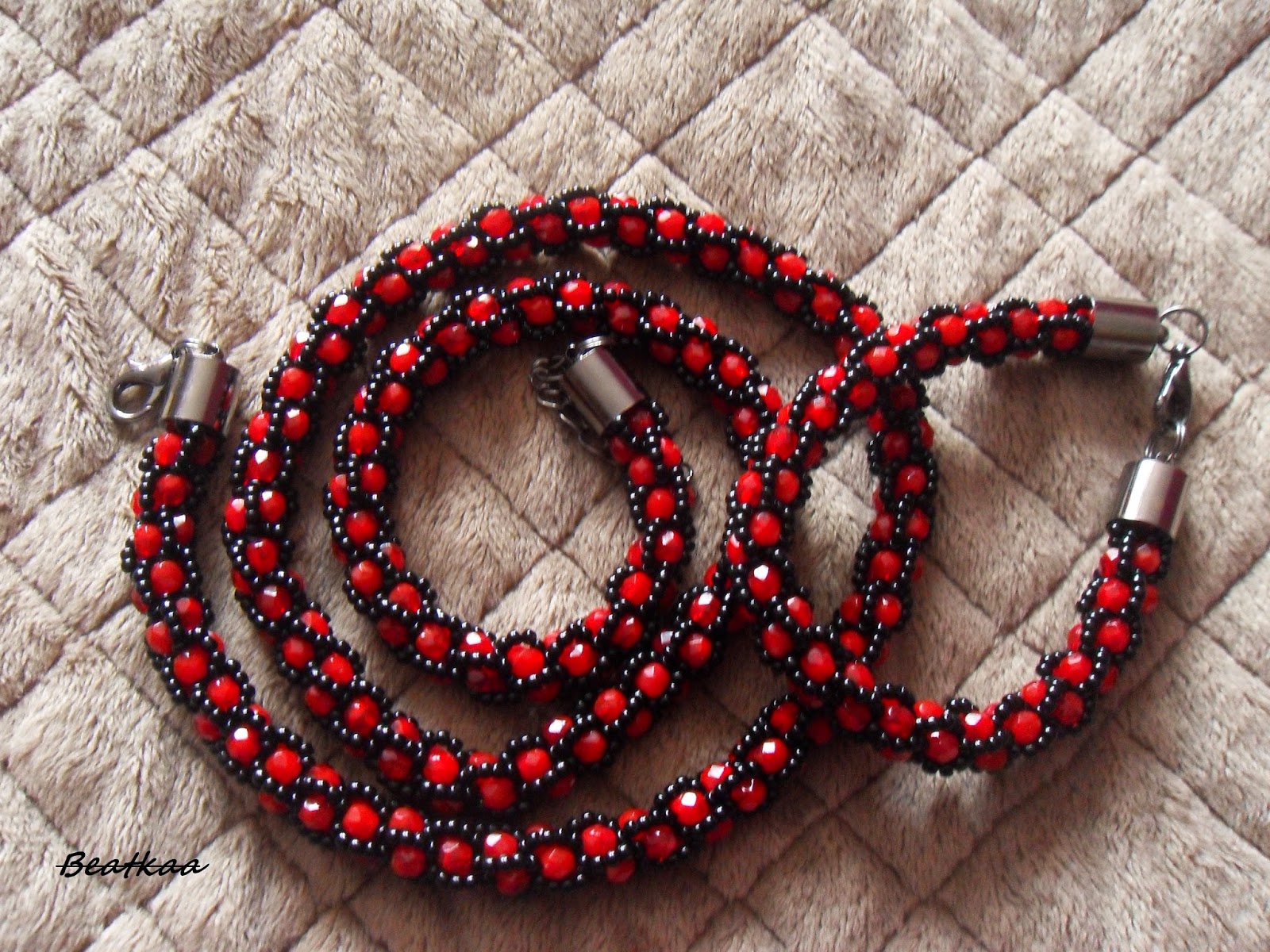 A o to mój pierwszy komplet zrobiony metodą sznura tureckiego ... koraliki FP na zdjęciu wyszły o wiele jaśniejsze niż są w rzeczywistości ...bransoletka i naszyjnik powstały w prezencie dla wyjątkowej osoby :).